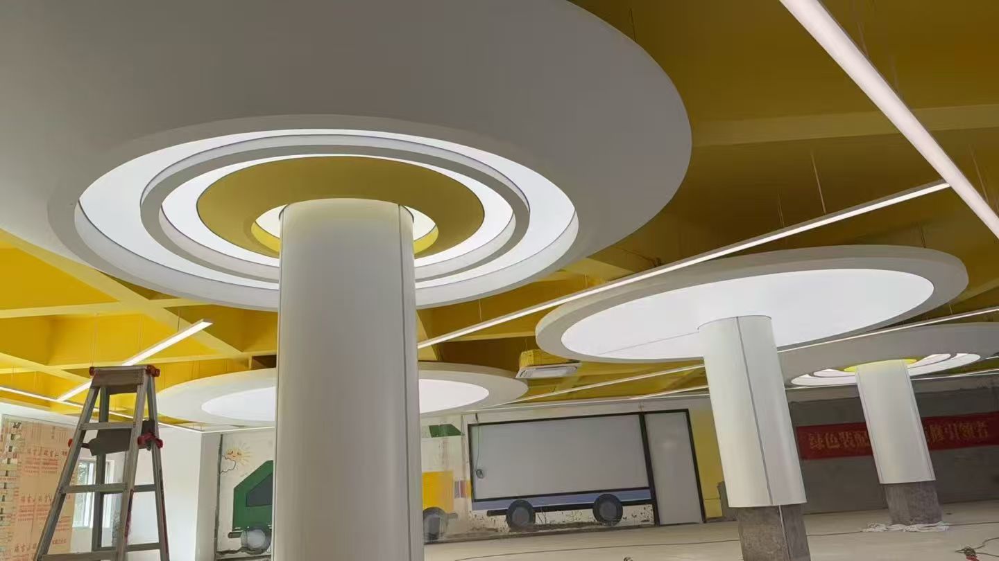 专注异型天花软膜吊顶定制,集创意设计、工厂生产、现场安装于一体,支持弧形、波浪、曲面、造型等各种非标异型造型打造。选用高透光、阻燃、防潮优质软膜材料,环保无味,柔韧度好,贴合各种复杂空间。搭配LED灯光系统,透光均匀、氛围感强,兼具美观与实用性。型材精工制作,结构稳固,拆装简单,后期维护方便。适用于商场...