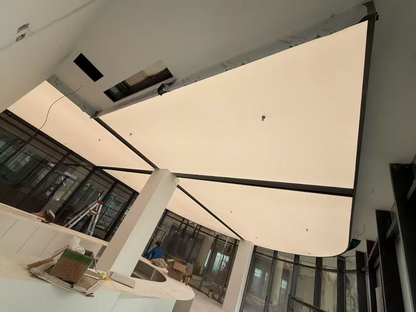 专注异型天花软膜吊顶定制,集创意设计、工厂生产、现场安装于一体,支持弧形、波浪、曲面、造型等各种非标异型造型打造。选用高透光、阻燃、防潮优质软膜材料,环保无味,柔韧度好,贴合各种复杂空间。搭配LED灯光系统,透光均匀、氛围感强,兼具美观与实用性。型材精工制作,结构稳固,拆装简单,后期维护方便。适用于商场展厅、办公大堂、酒店会所、门店网红吊顶、医美空间等场景。自有工厂直供,工艺成熟,落地效果还原度高,工期短、性价比高,一站式全包服务,省心省力。